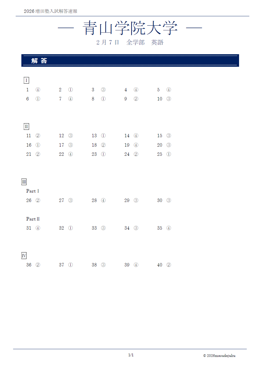 青山学院大学 全学部 英語解答