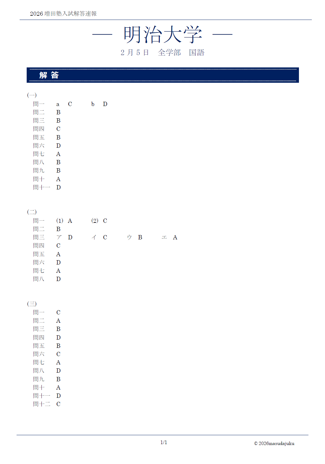 明治大学 全学部 国語解答